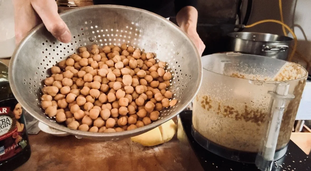 INGREDIENTS: 1 can chickpeas, 15 ounce, juice of one large lemon, 1 garlic clove, ground cumin,