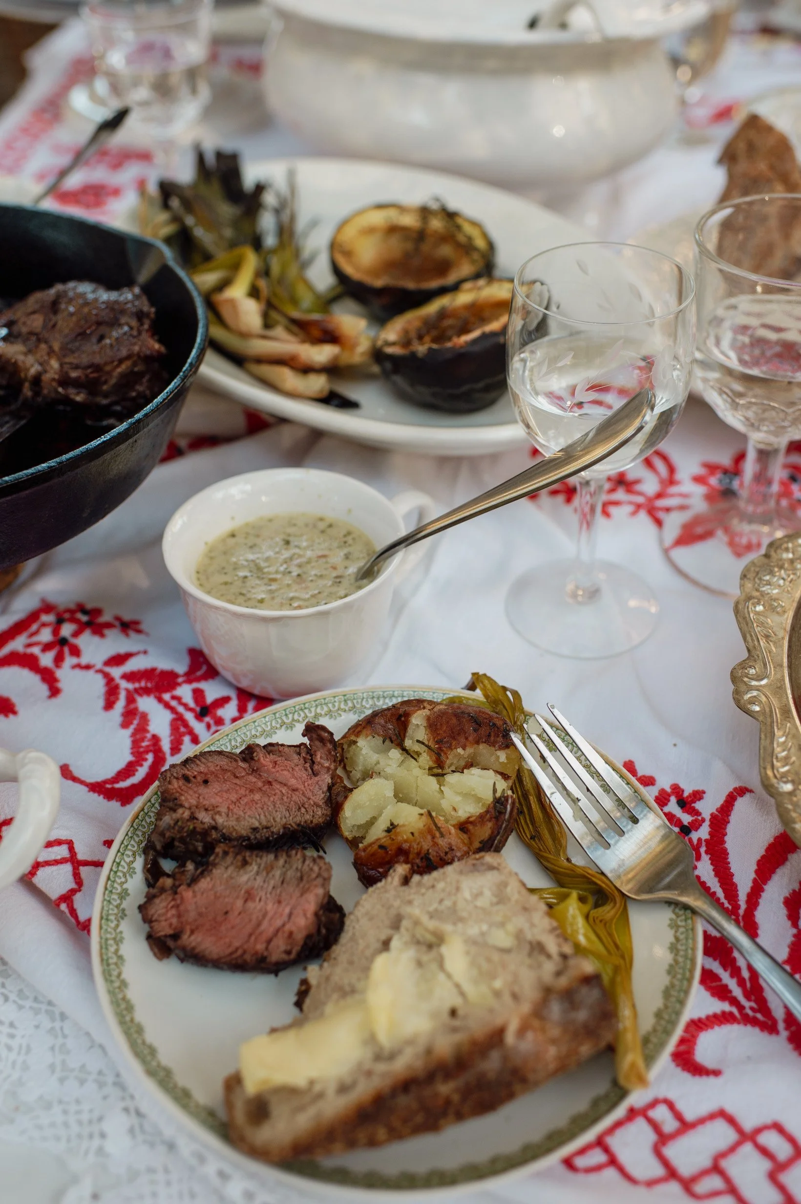 The meat is simple, with salt and pepper, thyme, rosemary and butter. Sear it in a hot pan on the stove. Add the herbs and butter a cook a few minutes more. Then transfer to the oven to cook the center, but ever so slightly as not to over cook. A tenderloin or filet is best eaten rare or medium rare. Baste it in the herb and melted butter as it cooks to ensure moisture through and through.