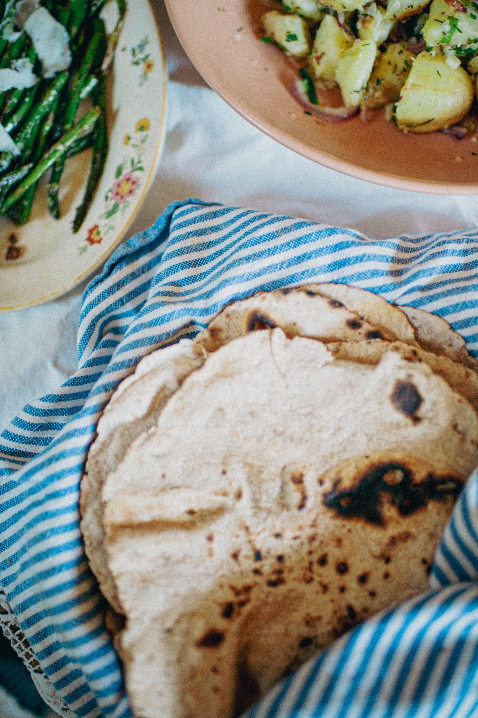 COOK THE FLATBREAD ON BOTH SIDES, REMOVE FROM HEAT AND STORE WRAPPED IN A DAMP CLOTH UNTIL READY TO EAT.