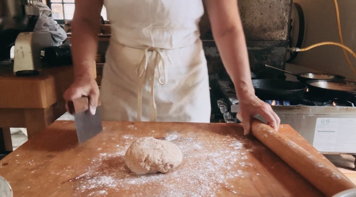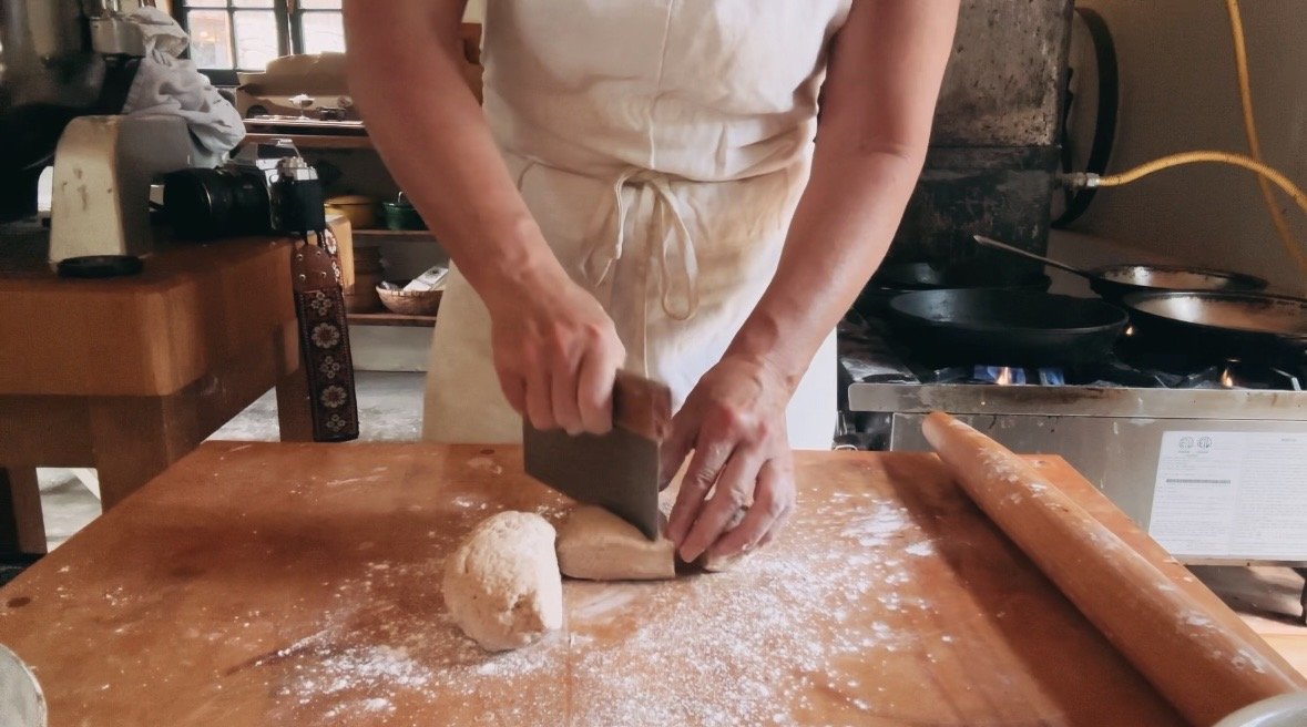 MIX TOGETHER YOUR DRIES IN A MIXING BOWL. ADD IN YOUR YOGURT. MIX AND KNEAD BRIEFLY TO COMBINE AND HYDRATE THE WHEAT. CUT DOUGH INTO 6 PIECES AND ROLL OUT INTO ROUNDS. THIS DOES NOT HAVE TO BE A PERFECT ROUND CIRCLE, BUT IT WILL HAVE TO FIT INTO YOU SKILLET.