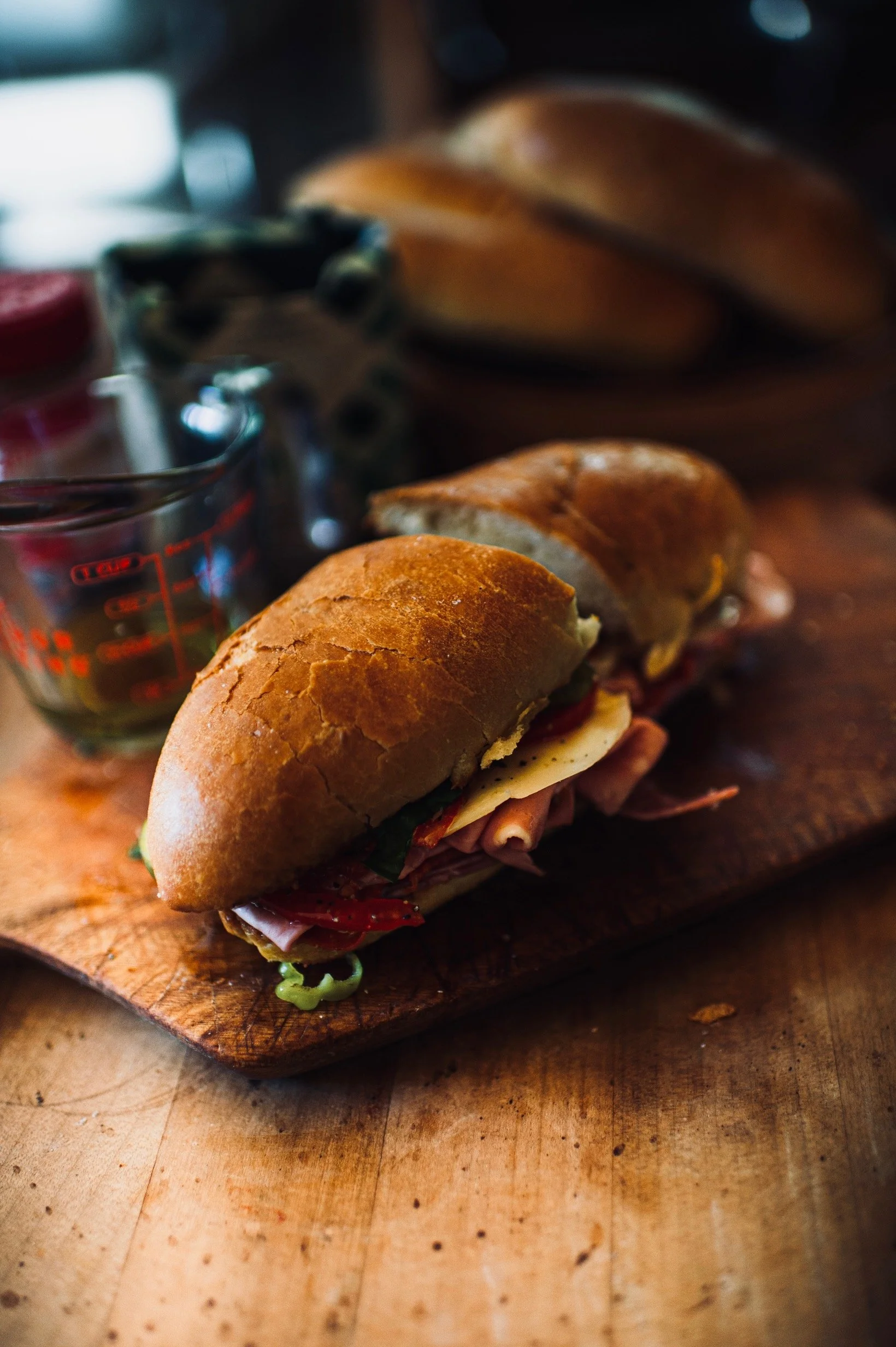 You are allowed to get creative. Think deli counter creative. Think Italian beachside creative. Think big sandwich creative. Salami, pepperoni, prosciutto, ham, mortadella, bologna, Calabrese, capicola……provolone or Swiss….Jarlsburg or Muenster to get fancy on the cheese……do you add mustard and mayo…..seeded or yellow……or straight broiled bun with butter and dripping in olive oil? Tomatoes, fresh…….Onions, thinly sliced….shred the lettuce……do you do pickle or pepperoncini….or both? Do you make a relish of it all, diced and mixed together in a bowl with salt and pepper and olive oil drizzle? Do you toast your bun? Do you keep it cold and soft? Definitely add the basil, fresh and ribboned……and if not the season a dash of dry basil with your salt and pepper. Definitely salt and pepper! A dressing like vinaigrette? Or simply a good virgin olive oil. So many choices! It is fun, it is big, it is delicious!