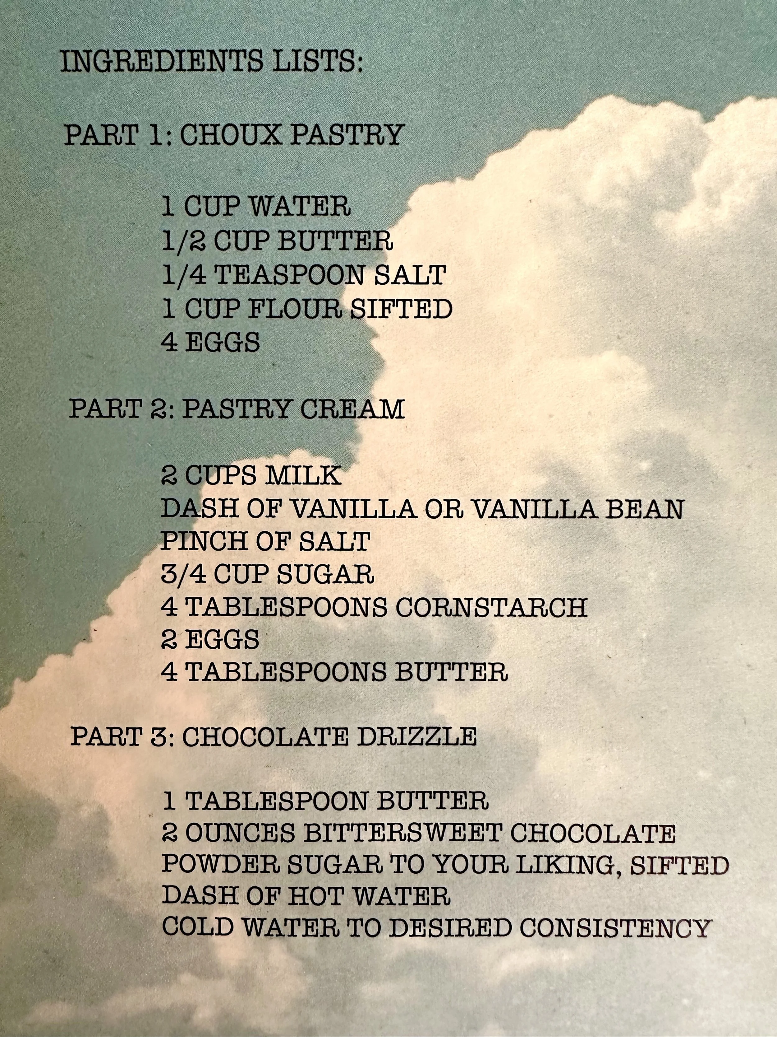 A simple three part recipe for a not so simple decadent delicious bite of vanilla pastry cream and chocolate put together in the perfect little container that is choux pastry.
