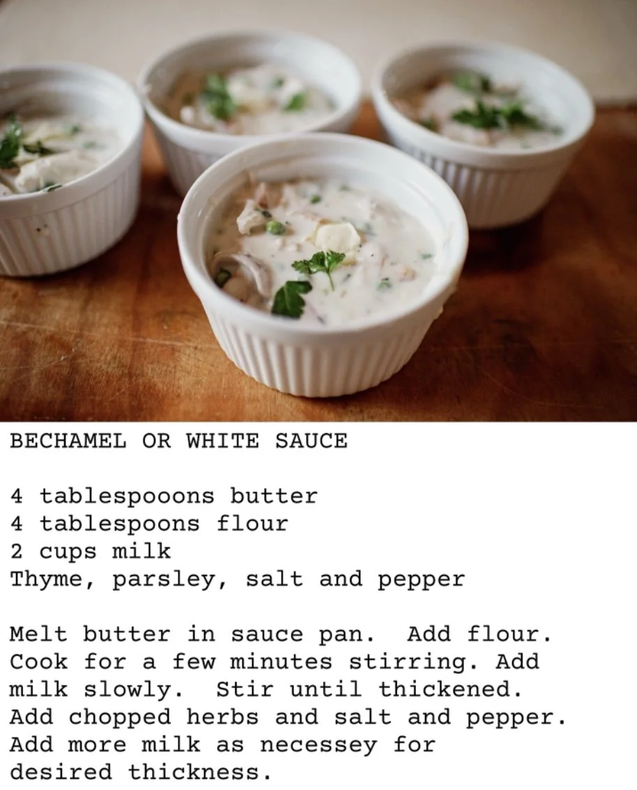 Make you bechamel sauce. Season with herbs and salt and pepper to taste.