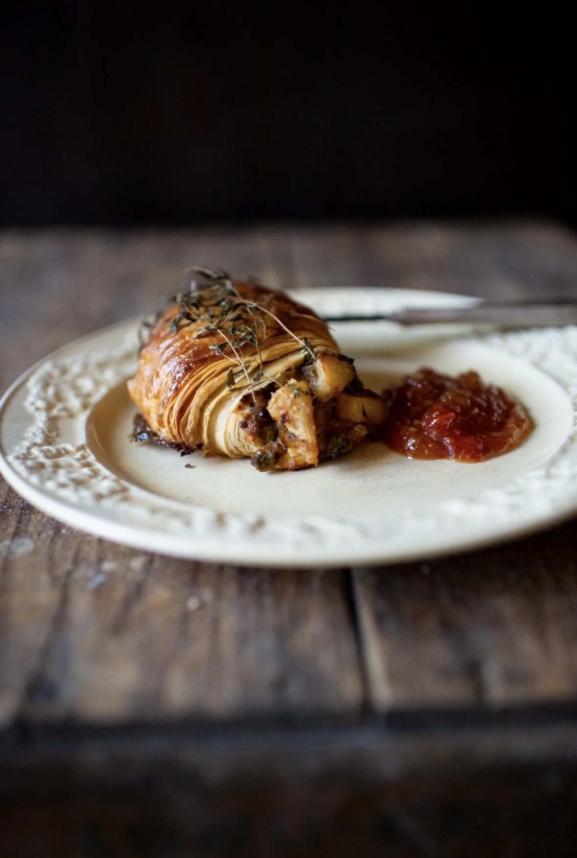 November is my birthday month so I thought I would celebrate it with a walk down memory lane with one of my favorite things. A savory pie! I find that is sort of thing hits nicely when the seasons turn a corner into fall and then on to the cold months of winter. The variations are endless. They are an everyday sort of thing but can also add a special sort of comfort to the holidays. Sausage rolls and a nice roasted pepper and feta bite sized puff are lovely as o’devours around Thanksgiving and the Chicken Pot Pie is our favorite around Halloween. The samosa handpie and the green bean spiced roll are fine vegetarian options and the heavy sausage roll from Michael James’ cookbook The Tivoli Road Baker is one of my favorites with his chili ginger sauce.
